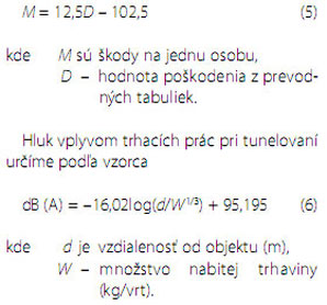 Pri razení podzemných diel technológiou NRTM (Nová rakúska tunelovacia metóda) sa horniny rozpojujú pomocou trhaviny. Ich účinky sa prejavujú v širokom okolí diela, kde vzniká zóna porušenia. Jej rozsah závisí od horninového masívu, charakteru diskontinuít, HPV a podobne. Príslušné právne predpisy a vyhlášky určujú kritériá na posúdenie duševného zdravia a majetku. Výška náhrady [5] za duševné zdravie sa stanovuje podľa vzorca