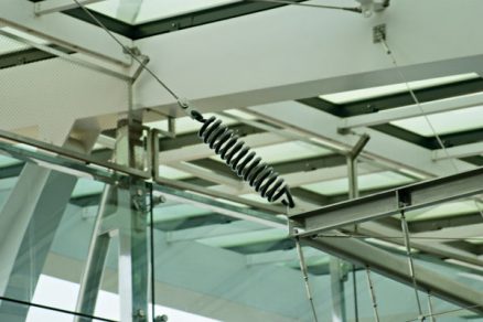 Konštrukcia sa podobne ako v prípade zavesených mostov spája s nosnými oblúkmi ťahadlami s pružinami, ktoré vyrovnávajú teplotnú rozťažnosť materiálov. Tie sú tiež prepojené s konštrukciami vo vnútri haly. Vlastné ťahadlá majú dokonca aj mriežky na popínavé rastliny, umiestnené na streche stanoviska dozorcov.