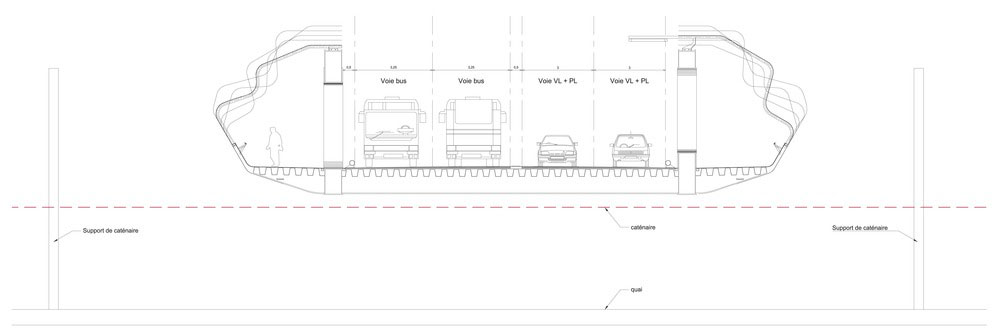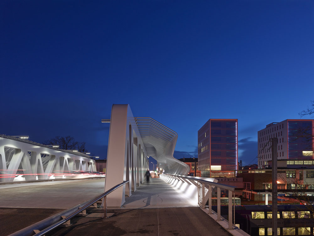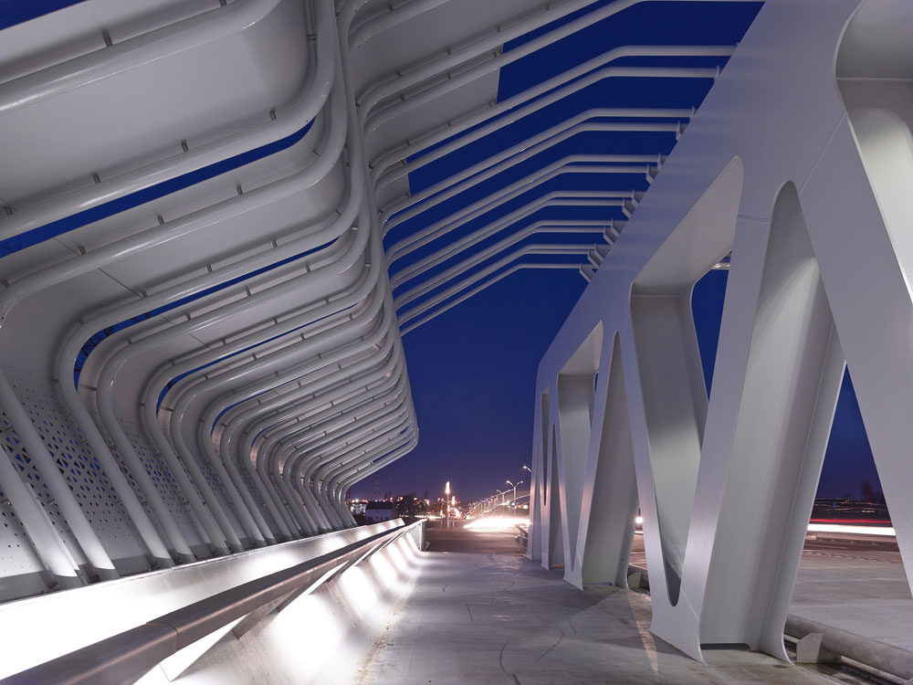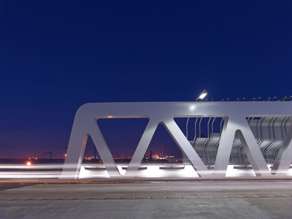 Cez železničnú trať viedol až donedávna povojnový betónový most. V rámci úpravy neďalekej multimodálnej stanice ho architekti nahradili novým oceľovým, ktorý má dva automobilové jazdné pruhy a oddelený pruh pre autobusy. Náročnosť miestnych poveternostných podmienok ilustruje aj fakt, že si obyvatelia želali, aby nový most chránil chodcov a cyklistov pred nepriazňou počasia. Architekti teda v nadväznosti na miestnu lodiarsku tradíciu zakryli časť mosta tvarovanými panelmi, ktoré pripomínajú zaoceánske parníky vo výstavbe.
