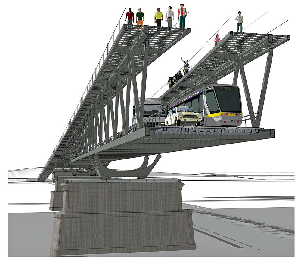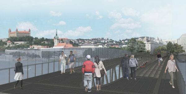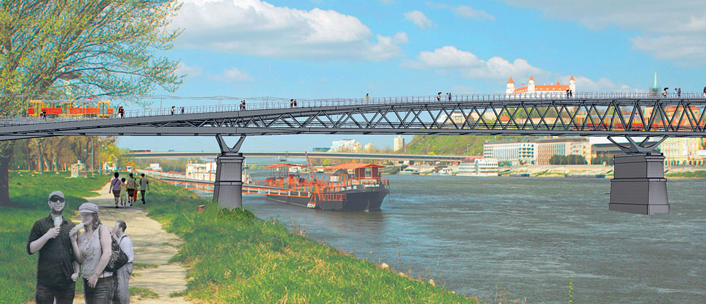 „Hľadal som vhodnú mieru intervencie a dôležitá bola aj konštrukčná logika a odkaz na pôvodný most Františka Jozefa a dnešnú jestvujúcu konštrukciu. Nezanedbateľným kritériom bola priehľadnosť konštrukcie aj výhľady ponúkané chodcom, cyklistom, cestujúcim v električke či v aute. Horné pásy priehradovej konštrukcie využívam ako lávky pre peších.