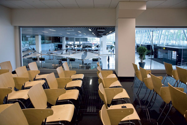 Priestor sa buduje zvnútraNová doba si žiada nových zákazníkov. Nie takých, čo by vyhadzovali čašníkov z kaviarní, ale takých, ktorí v hojnom počte prichádzajú do terminálu minúť svoje financie – na let, na suvenír, na kávu, či na štamperlík pred očakávanými turbulenciami. Noví zákazníci si však žiadajú aj nové terminály. Pohodlné, prehľadné, zrozumiteľné a podľa možnosti aj dobre vyzerajúce. Dostavbu letiskového terminálu v Bratislave, ktorý mal nahradiť ten staručký, čo už nestíhal tempu tretieho tisícročia, sprevádzali veľké očakávania. Stalo sa. Mohutný finálny stavebný nápor v znamení dennej práce na tri zmeny napokon stihol magický termín 9. jún (tri dni pred parlamentnými voľbami) a hlavné mesto Slovensko dostalo prvú etapu nového terminálu.