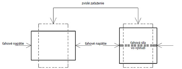 Nasledujúci jednoduchý príklad nám ozrejmuje koncept vystuženej zeminy a opisuje sa v ňom princíp distribúcie síl v zeminách. Na obr. 1 je znázornený element zeminy, ktorý je zaťažený rovnomerným zvislým zaťažením. Zemina sa pod zaťažením deformuje a v okolitom prostredí na základe rovnováhy síl vzniká horizontálne ťahové napätie. Ak tú istú vzorku zeminy vystužíme geopásmi, ťahové napätie v okolitom prostredí vyvolané deformáciou zeminy prenesie vložená výstuž. Ťahové napätie sa prenesie do výstuže trením medzi zeminou a výstužou. Tento princíp interakcie medzi zeminou a výstužou zabezpečuje zníženie horizontálnych napätí a vďaka tomu znižuje celkovú deformáciu zeminy, zvyšuje jej tuhosť a vytvára stabilný vystužený blok.
