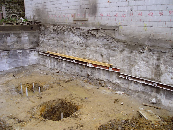 Aby sa výkopom nenarušila správna funkcia podložia chráneného základu, jeho stabilita sa zabezpečí pažiacou stenou. Počas výkopu sa nesmie posunúť smerom do stavebnej jamy, pretože by to mohlo porušiť základy zabezpečovaného objektu. Úloha profesionálne zdatného statika je pritom nezastupiteľná.