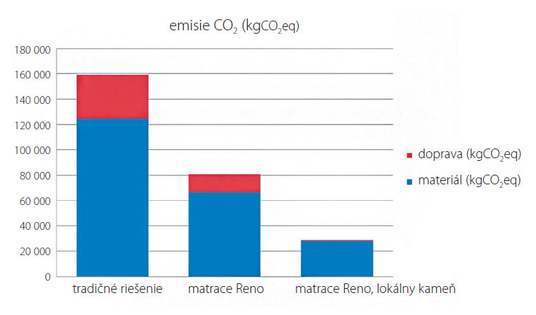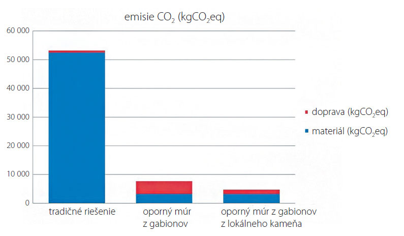 Obr. 4 Uhlíková stopa gabionu v porovnaní s tradičným riešením