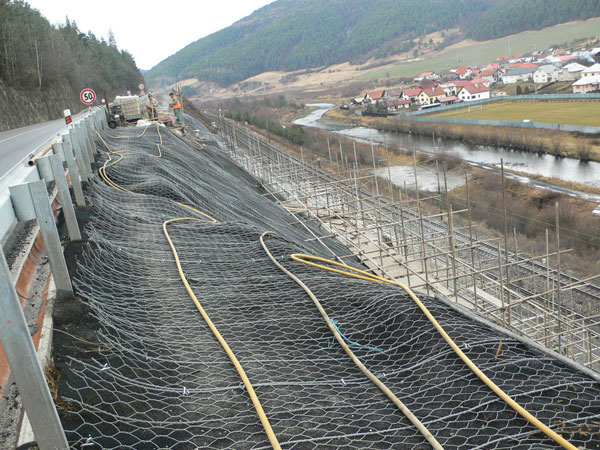 Sieťovanie strmých svahov tvorí v určitých prípadoch vhodnú alternatívu k striekaným betónom. Hlavnou výhodou je ich estetickejšie splynutie s okolitým terénom a rýchlosť realizácie.