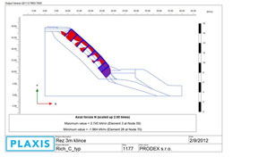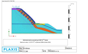 | Obr. 5 Priebeh deformácií po namodelovaní zvetrania povrchovej vrstvy s uvažovanou hrúbkou | Obr. 6 Ukladanie sietí na svahy |