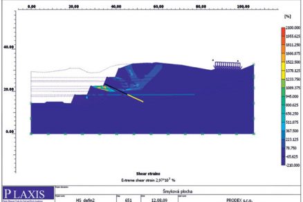 | Obr. 2 Vodorovné deformácie | Obr. 3 Priebeh šmykovej plochy |