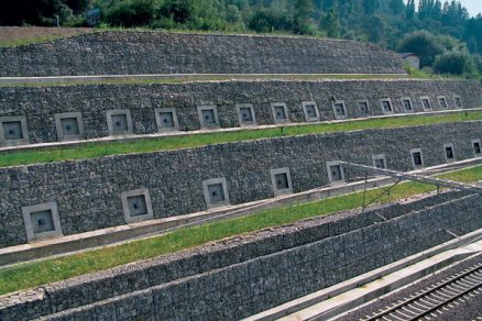 Pohľadovú úpravu striekaného betónu zabezpečil obkladový gabiónový múr s hrúbkou 0,6 m, ktorý je vyhotovený zo zváraných sietí s rozmermi 100 × 100 mm na betónových základoch.