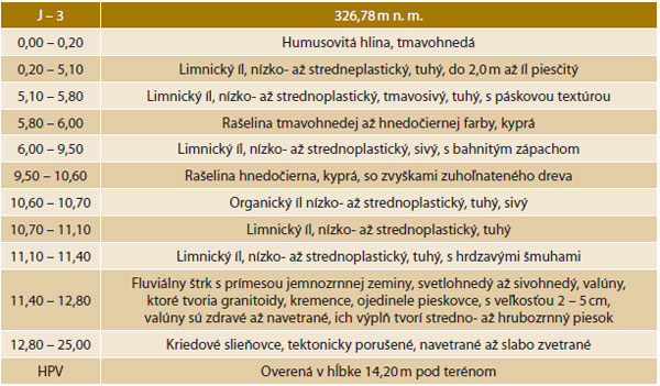 Inžiniersko-geologický prieskum pre danú lokalitu spracovala v roku 1997 firma INGEO, a. s., Žilina. Pri posudzovaní objektu sa použili geologické pomery zistené vrtmi: J – 1, J – 3, J – 4. Povrchovú vrstvu tvorí humusovitá hlina, pod ktorou sú overené limnické íly stredne až nízkoplastické. V limnických íloch sú overené polohy rašelín (podľa vrtu J1 sú to polohy v hĺbke 4,7 – 6,0 m a 10,1 – 11,8 m), ktoré vytvárajú súvislé šošovky. Pod ílmi sa nachádzajú vrstvy nesúdržných zemín (piesok ílovitý a štrk ílovitý). Skalné podložie tvoria vrchnokriedové zlepence. Hladina podzemnej vody sa zistila vo vrte J – 3 v hĺbke 14,2 m pod terénom. Vo vrte J – 1 sa voda vyskytovala len vo forme slabého priesaku.