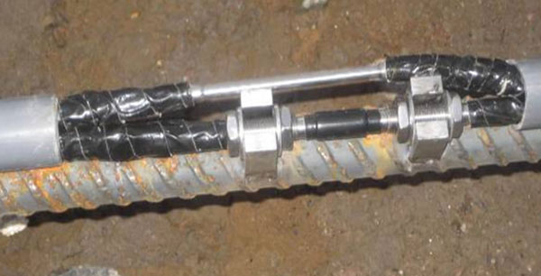 Snímač mechanického napätia MS-01 s teplotnou kompenzáciu, následne zaliaty do betónovej dosky.