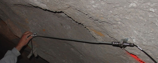 - monitorovanie prasklín/trhlín a dilatačných medzier na stenách budov, betónových konštrukcií, vozoviek, stenách tunelov a banských šácht
