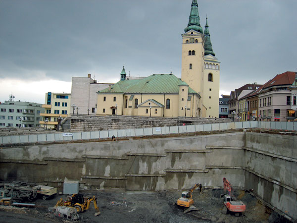 Zatiaľ čo prvá časť tohto obchodného domu pri Farských schodoch je tesne pred dokončením, na druhej etape momentálne dodávateľská firma realizuje nosnú železobetónovú konštrukciu. Investorom projektu je Mirage Shopping Center, a. s. Realizácia prvej etapy projektu pri Farských schodoch sa začala výkopom stavebnej jamy v roku 2008. Výkop stavebnej jamy druhej etapy pri Námestí Andreja Hlinku sa začal v marci tohto roka.Návrh paženia vychádzal z požiadavky hornej stavby, inžinierskogeologických pomerov, morfologických pomerov a okolitej zástavby. Projekt paženia spracoval tím pracovníkov firmy Geotechnik SK, s. r. o. Dodávateľom paženia stavebnej jamy prvej aj druhej etapy je firma Tubau, a. s. Stavebný dozor investora zabezpečovala firma ENG2 SR, spol. s r. o.
