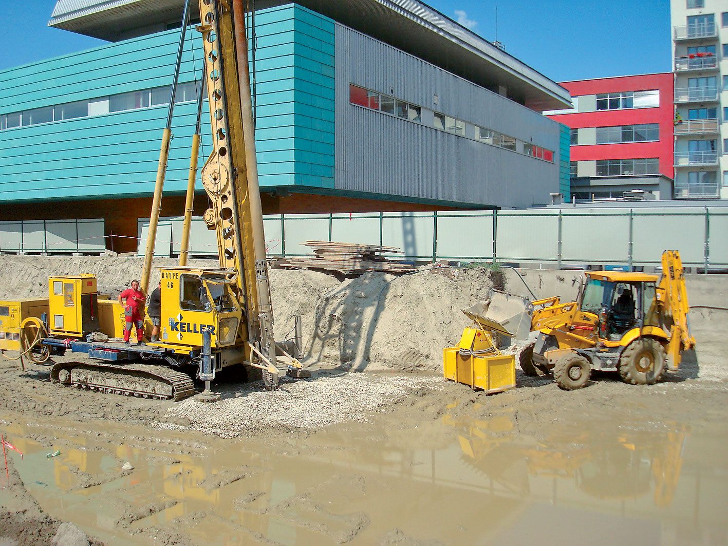 Stavebná jama s podchytením a utesnením tryskovou injektážou – Soilcrete