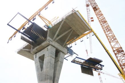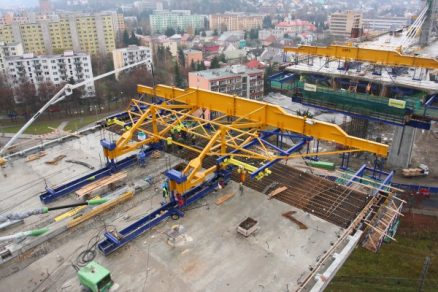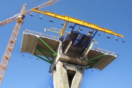 Betonárske vozíky firmy pri letmej betonáži mosta v Považskej Bystrici
