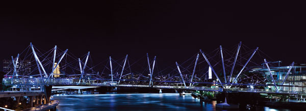 Slovo tensegrity vzniklo spojením výrazov tensional a integrity. Prvýkrát tento termín použil v roku 1948 Buckminster Fuller pri opise tvorby sochára Kennertha Snelsona, ktorého skulptúry sú vlastne systémy správne vyvážených tlakových a ťahových síl. Podstata princípu tensegritov je v dosiahnutí rovnováhy medzi tlakom spôsobeným tiažou daných pevných prvkov a ťahom, ktorý tieto prvky vyvolávajú pri svojich vzájomných spojeniach. Z architektúry bol tento výraz prevzatý aj na označenie princípu, ktorým sa udržujú tvary živých organizmov.Architekti z ateliéru Cox Rayner Architects na stavbe mosta spolupracovali s firmou Arup združujúcou technických špecialistov, inžinierov a dizajnérov a podpísanou pod dlhým radom tých najzaujímavejších konštrukcií na svete. Práve firma Arup vytvorila počítačové modely, na základe ktorých sa potom spresnilo umiestnenie a vzájomné uhly jednotlivých prvkov konštrukcie.