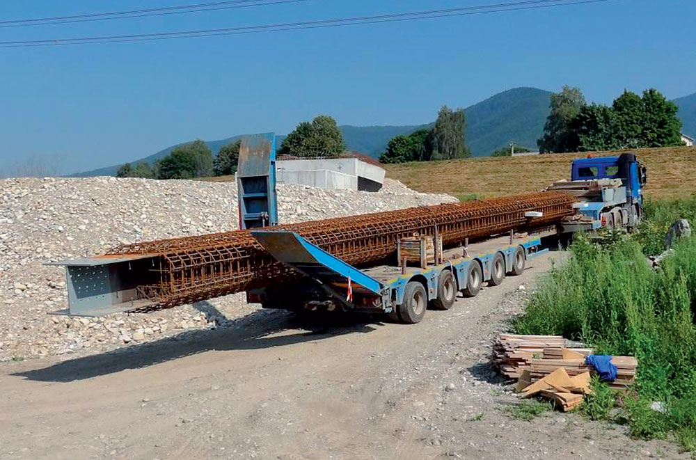 Oceľový celozvarovaný nosný trám bol vyrobený v stredisku oceľových konštrukcií spoločnosti Váhostav – SK, a. s. Jedenásť montážnych dielcov mostného trámu so šírkou 4,164 m a dĺžkou 14,45 až 16,17 m, ako aj oceľové stojky pylónov sa prevážali podvalníkom po cestnej komunikácii. Montážou jedného 30 m dlhého dielca, ktorý vznikol spojením dvoch montážnych dielcov na stavenisku pri opore na strane krpelianskeho kanála, sa zabezpečila bezpečná vzdialenosť závesov montážneho žeriava od vedenia vysokého napätia nad touto oporou.