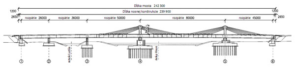 Limitovaná poloha nivelety rýchlostnej komunikácie R1 a požadované rozpätie 80 m si vyžadovali návrh stlačenej výšky prierezu nosnej konštrukcie. Túto požiadavku spĺňa navrhnutá konštrukcia s nízkym pylónom, tzv. systém extradosed.