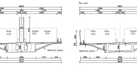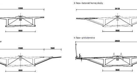 Ls 15,7/1 770 Mpa vo vzdialenosti 0,5 m od seba. Styk konštrukcie hornej dosky jadra prierezu so spriahujúcou doskou sa riešil zazubením s prepojením betonárskou výstužou.