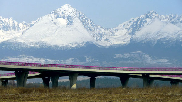 Obr. 17  Pohľad na most s najvyšším štítom Tatier v pozadí (2 655 m n. m.)