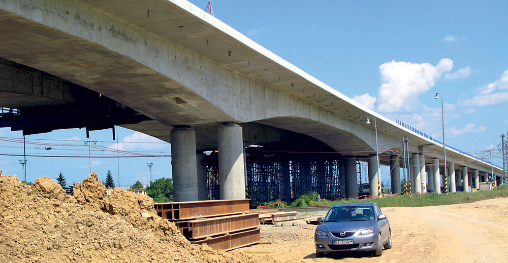 Mostný objekt nad širokorozchodnou železničnou traťou (206-00) je najväčší na tejto stavbe. Most bol navrhnutý ako 12-poľový (ľavý most) a 13-poľový (pravý most) a tvoria ho dva dilatačné celky. Prvý dilatačný celok, ktorý premosťuje koľaj ŽSR, má nosnú konštrukciu monolitickú, budovanú na podpernej skruži, s rozpätiami krajných polí 28 m a medziľahlých polí 36,5 m.