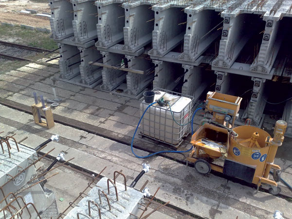 Most tvoria tyčové prefabrikáty s dvoma dĺžkami – 21 a 31,82 m. Pri nosníkoch dĺžky 31,82 m bolo predpätie tvorené vopred predpätými lanami a zároveň dodatočným predpätím zloženým zo štyroch lán v každom kábli. Predpínacie práce dodatočného predpätia sa realizovali v prefa závode. Požiadavka predpínania káblov dodatočného predpätia až v čase 30 až 60 dní od betonáže prefabrikátov nútila realizátora predpätia vykonať na každom nosníku ochranu proti korózii predpínacej výstuže, aby bola zabezpečená kvalitatívna požiadavka výsledného produktu. Po predopnutí boli predpínacie káble prefabrikátov zainjektované maltou spĺňajúcu kritériá nových európskych noriem. Pracovníci Freyssinet CS zároveň priamo na stavbe zabezpečovali rektifikáciu prefabrikovaných priečnikov na sústave ôsmich 200-tonových lisov do požadovanej polohy.