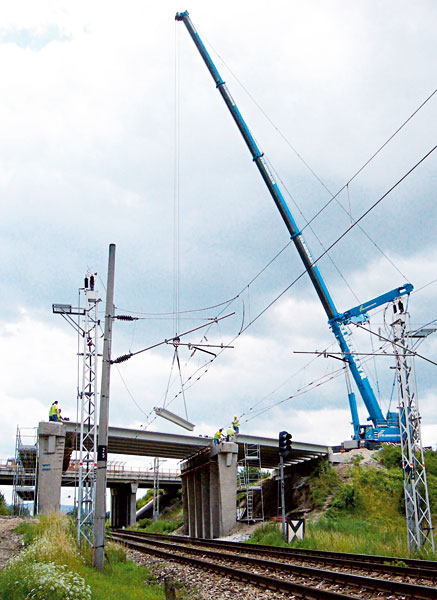 Demontáž pôvodných nosníkov a montáž nových prefabrikátov sa uskutočňovala v prestávkach medzi prejazdmi jednotlivých vlakov za dozoru ŽSR (obr. 8). Náročnú organizáciu prác vyžadujúcu zložité časové nadväznosti zvládol zhotoviteľ bez komplikácií a s vysokým štandardom vyhotovenia detailov.