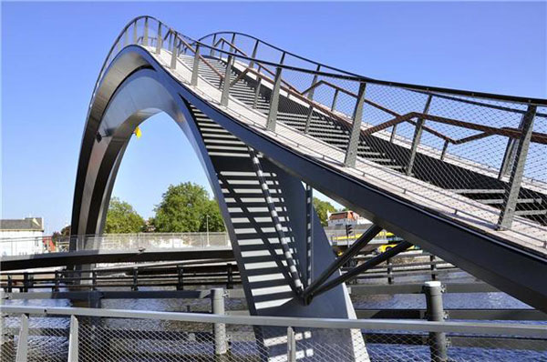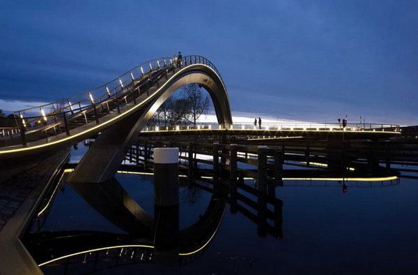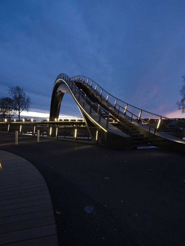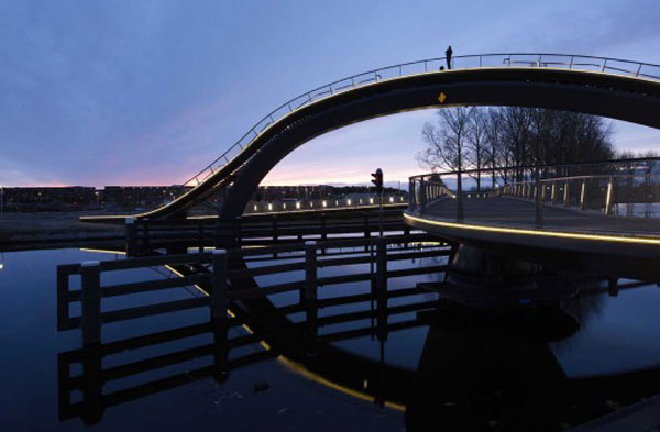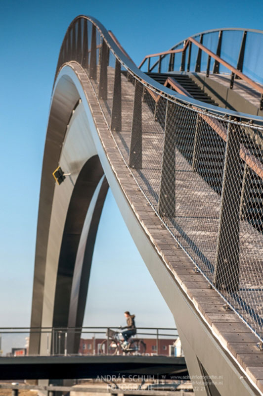 Most Melkwegbrug, otvorený v októbri minulého roka, spája štvrť Weidevenne s historickým centrom holandského mesta Purmerend. Správny sklon pre cyklistov a ľudí na vozíčku si vyžadoval dĺžku viac ako 100 m. Nakoniec sa sa táto výzva vyriešila separáciou jednotlivých užívateľov. Peší prekračujú kanál 130 schodiskovými stupňami cez 12 m vysoký oblúk, ktorý súčasne poskytuje výhľad a v najvyššom mieste symbolicky spája staré a nové. Cyklistický most sa vinie nad hladinou tak, aby dosiahol vhodný spád pre imobilných a zodpovedajúcu dĺžku.Dve základné hmoty mosta sú umiestnené v priestore diagonálne, sú materiálovo i farebne zjednotené. Konštrukcia je oceľová s rozpätím 66 m, váži 85 t. Pri prechode lode sa roztvára na dve časti. Osvetlenie je dizajnové – LED diódy sledujú kontúry mosta a vytvárajú unikátny zážitok po zotmení. Stavba je výsledkom tendra z februára roku 2010, výstavba sa začala už v januári 2011, skončila sa v októbri 2012. Na konci roka 2012 bol most zaradený do rebríčka Designboom TOP 10 public spaces (verejné priestory) 2012 (č. 2) a získal čestné uznanie BNA Building of the Year (stavba roka) Award 2013.