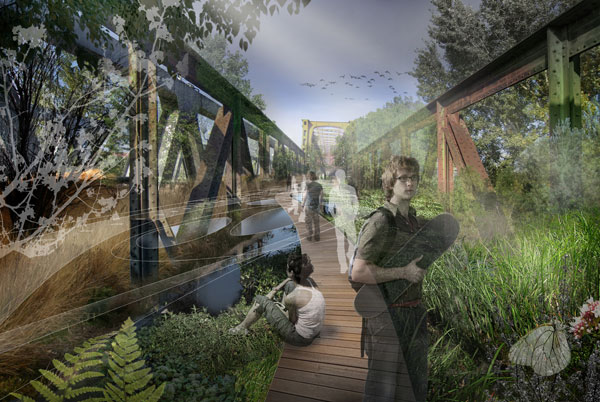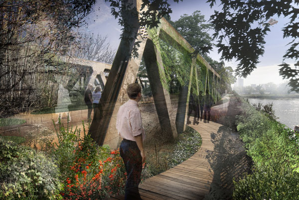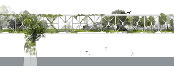 Existujúci most navrhujú pretransformovať na čisto peší most – park, kde iba čas a ľudia vytvoria jeho nový príbeh.