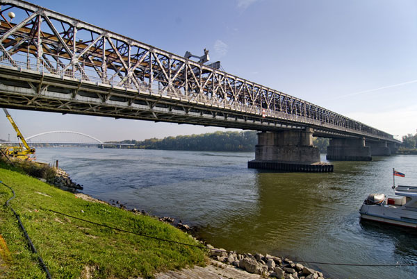 Starý most v Bratislave so zeleným šálom
