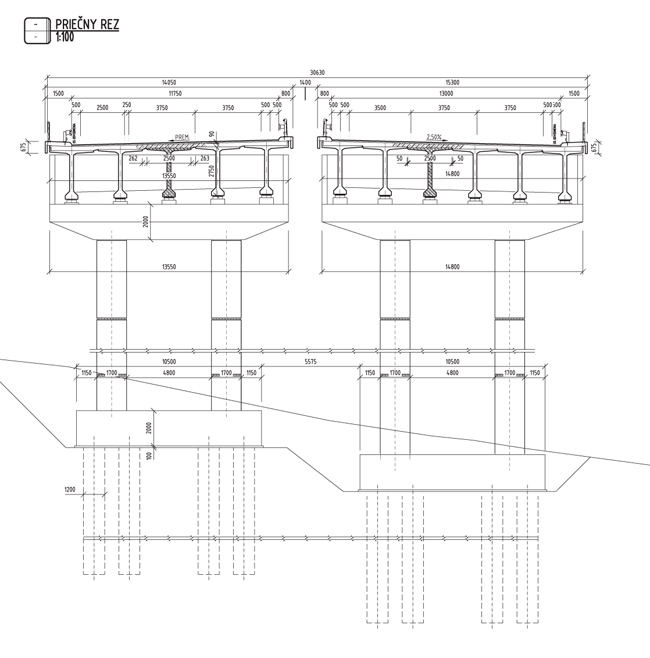 Priečny rez mostom na diaľničnej sieti v SR