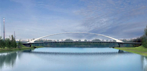 Most je navrhnutý ako dvojpoľový. Jednotlivé polia sú v podstate nezávislé konštrukcie, oddelené od seba dilatačnou škárou. Nosnú konštrukciu hlavného poľa bude tvoriť oceľový sieťový oblúk s dolnou mostovkou z predpätého betónu a s predpätým oceľobetónovým ťahadlom. Oblúk je oceľový – strednú časť tvorí viacnásobný komorový nosník, ktorý je rozdelený na dve ramená, na koncoch pripojených na mostovku. Konce oblúka sú vyplnené betónom vysokej pevnosti. Ťahadlo oblúka je umiestnené nad mostovkou, má spriahnutý oceľovobetónový prierez. Pozdĺžna ťahová sila sa prenáša najmä šiestimi predpínacími káblami, ktoré sú umiestnené vnútri prierezu ťahadla.