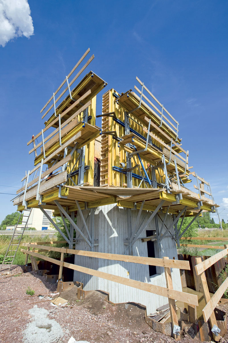 Na zhotovenie dvoch opôr sa použila kombinácia dvoch rozdielnych Doka-nosníkových debnení, a to FF 20 a Top 50.