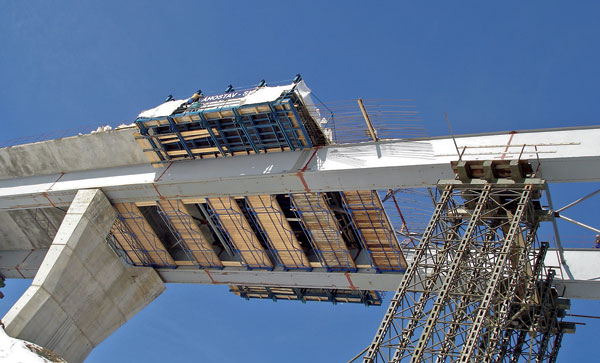 Realizácia monolitickej spriahovacej dosky musela prebiehať pri optimálnych teplotách od 5 do 15 °C z dôvodu rozdielnej rozťažnosti ocele a betónu. Keďže nulová hodnota predstavovala 10 °C, niektoré betonáže sa realizovali v nočných hodinách.
