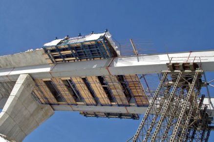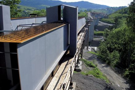 Vysúvanie a montáž oceľobetónovej konštrukcie mosta pri obci Skalité