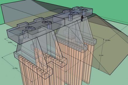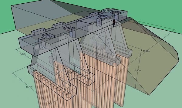 | Obr. 4 Detail vystuženia ozubu na opretie výtlačného zariadenia | Obr. 5 Model mosta v mieste odpojenia rampy z hlavnej komory |