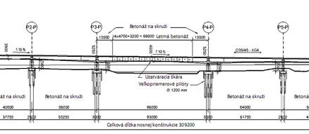 Obr. 12 Pozdĺžny rez pravým mostom