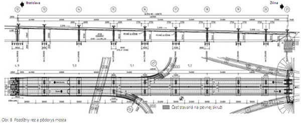 Obr. 7 Pozdĺžny rez a pôdorys mosta