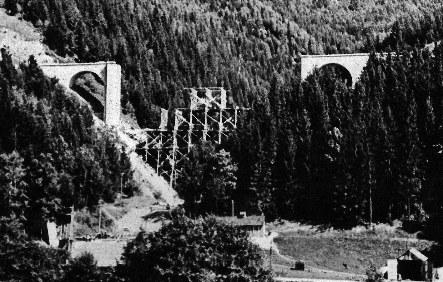 podporné lešenie betonárskej skruže a samotnej skruže klenby. Armatúra bola položená 28. októbra 1945 a dva dni na to sa začala betónovať hlavná klenba, čo trvalo 10 dní. Po zhotovení debnenia stojok a samotnej mostovky sa betonárske práce skončili začiatkom decembra. Po vykonaní zaťažovacej skúšky bol viadukt odovzdaný do prevádzky 14. 1. 1946. Pri odpratávacích prácach sa autogénom a trhavinami odstránilo 900 m3 betónu a 85 t armatúrového železa. Na opravu sa spotrebovalo 86 t armatúrového železa a 1 200 m3 betónovej zmesi. Štrk do betónu si firma vyrábala sama na stavenisku. Kameň sa dovážal z lomu po 3 km dlhej železnici, ktorá bola postavená na tento účel.