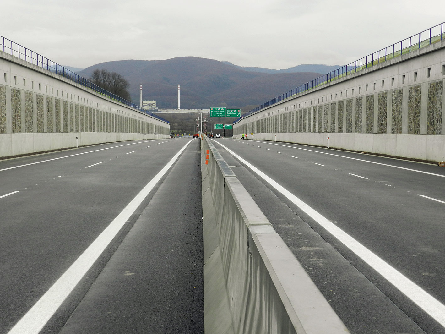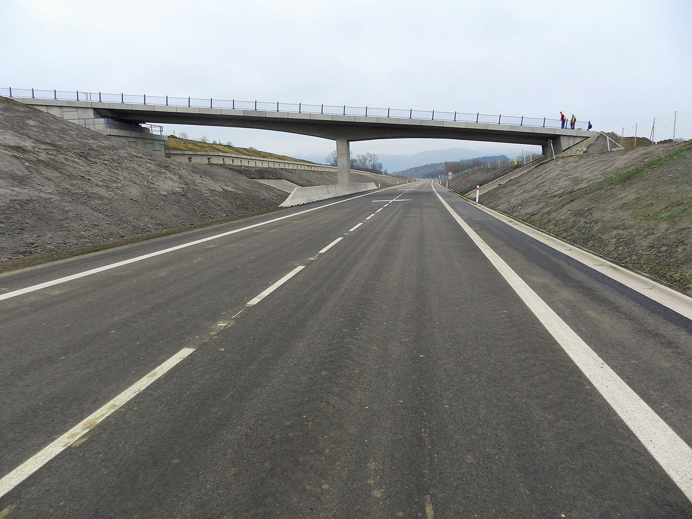Konštrukcia vozovky je v zmysle Technických požiadaviek objednávateľa navrhnutá pre triedu dopravného zaťaženia II a na návrhové obdobie 30 rokov. Má zloženie podľa tab. 1. Spolu sa na stavbe použilo približne 15 000 m3 cementovej stabilizácie a položilo sa približne 46 000 t asfaltových zmesí.