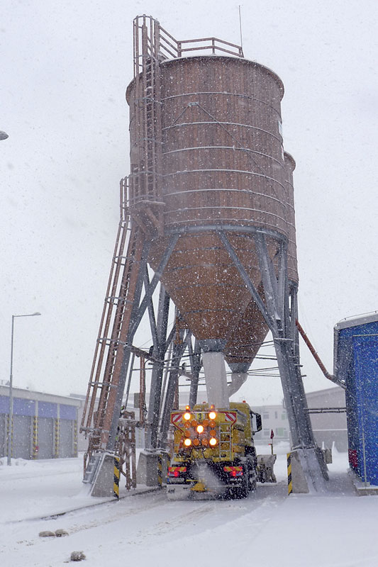 V stredisku správy a údržby Selenec sú dve silá s kapacitou 180 ton soli a doplnkový sklad, kde sa skladuje ďalších 150 ton. Na odpočívadle Tekovské Nemce sa nachádza jedno silo s kapacitou 180 ton. V areáli strediska je situovaná aj výrobňa soľanky. Používa sa kvalitná posypová soľ nemeckej výroby, ktorá neohrozuje životné prostredie. Nepoužívajú sa inertné posypové materiály (napríklad kamenivo).