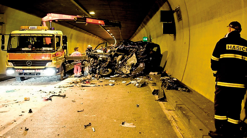 Hoci sú veľké požiare v tuneloch mediálne príťažlivými témami, ktoré strhávajú pozornosť nielen laickej verejnosti, nie sú zďaleka jedinými incidentmi s fatálnymi následkami. Vzhľadom na veľmi zriedkavý výskyt veľkých požiarov je faktom, že väčší počet obetí v cestných tuneloch majú na svedomí nehody, pri ktorých nedôjde k požiaru a ktoré označujeme ako mechanické nehody. Tieto nehody môžeme rozdeliť na nehody jedného alebo viacerých vozidiel, čelné zrážky alebo predno-zadné kolízie a podobne. Zaujímavé výsledky priniesla rakúska analýza veľkého počtu nehôd v tuneloch [2]. Vo výskume, ktorý hodnotil nehody v tuneloch v období rokov 1999 – 2003, boli analyzované údaje zo 447 nehôd so zraneniami osôb. V tuneloch s obojsmernou premávkou bola nehodovosť 0,076 nehôd na 1 milión vozidlokilometrov (vzkm), čiže o niečo nižšia v porovnaní s tunelmi s jednosmernou premávkou, kde hodnota nehodovosti bola