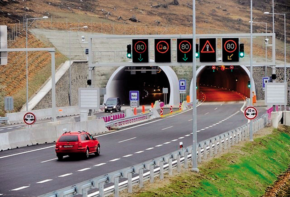 Obr. 2 Portál tunela Bôrik – vhodné architektonické riešenie, ale informačné zahltenie množstvom dopravných značiek a signálov (zdroj: ČTK)