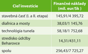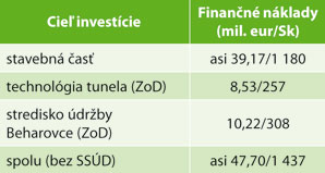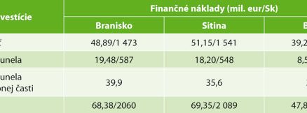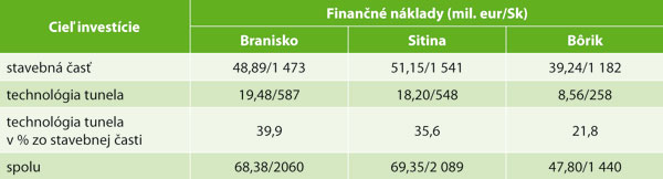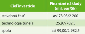 Tab. 1: Finančné náklady na výstavbu tunela Branisko