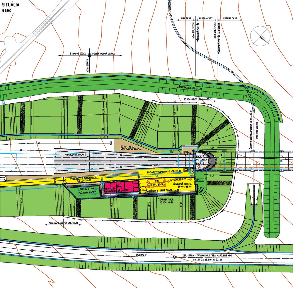 systému a akumulačná havarijná nádrž umiestnená pod nástupnou plochou. Prístup na východný portál bude zabezpečovať prístupová komunikácia z novej stanice Štrba.