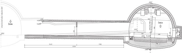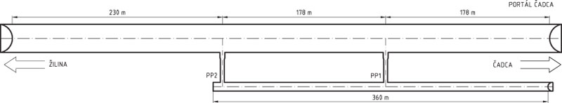Nástupné plochy pred oboma portálmi, ako aj prístupová komunikácia k portálu Čadca zostanú razením rúry nedotknuté. Razenie tunelovej rúry obmedzí a neskôr zruší funkčnosť únikovej štôlne (obr. 3) a sťaží prístup na nástupnú plochu pred portálom Žilina.