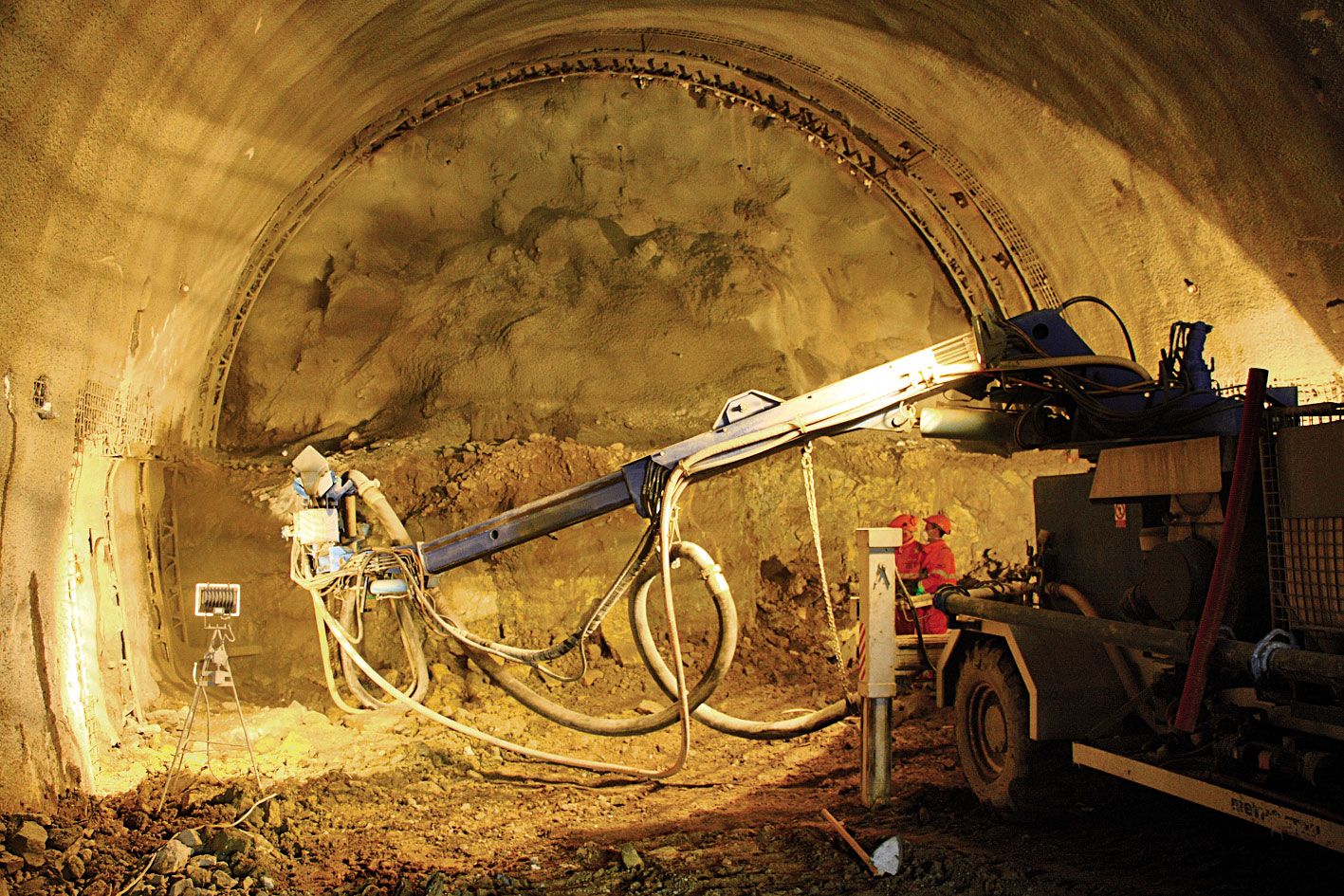 Na zabezpečenie požadovanej životnosti minimálne 40 rokov sme navrhli na primár aplikovať ochrannú vrstvu zo striekaného betónu triedy C 25/30 s hrúbkou 100 mm, ktorá bude vystužená rozptýlenou nekovovou výstužou z polypropylénových (PP) makrovlákien. V roku 2007 sa v mieste ľavej rúry tunela Poľana robil geotechnický prieskum, v rámci ktorého sa vyrazila prieskumná štôlňa. Z nej sa teraz 291 m využije ako časť únikovej štôlne. Táto časť sa nemusí nijako reprofilovať, iba sa upraví dno a nastrieka ochranná vrstva zo striekaného betónu ako v novej časti štôlne.