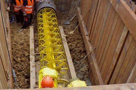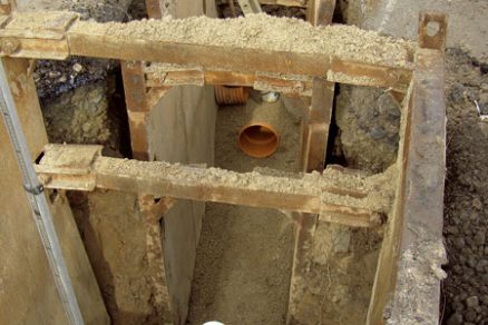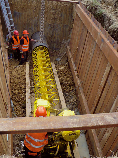 | Hlboké výkopy s využitím ťažkých pažiacich boxov pre bezpečnú prácu | Realizovanie oceľovej chráničky popod štátne komunikácie a železničné trate |