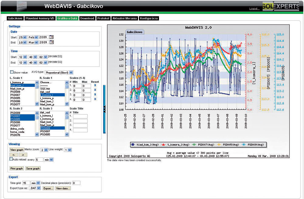 Obr. 1 Grafický výstup zo systému Geomonitor automatizovaného merania plavebných komôr Gabčíkovo