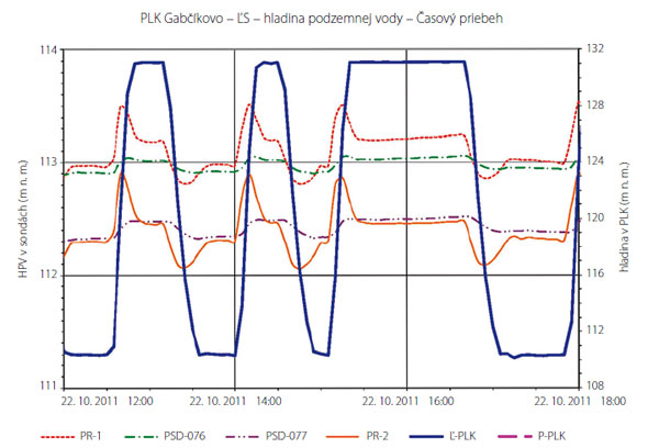 Pred začiatkom tesniacich prác sa v apríli 1999 merali hladiny pri takzvanej špeciálnej prevádzke komôr, to znamená minimálne dve hodiny prázdne obidve komory a potom dve hodiny napustená jedna komora. Ukážka reakcie hladín vody na plnenie ľavej PLK v roku 2012 je znázornená na obr. 2.