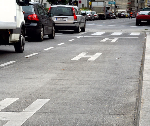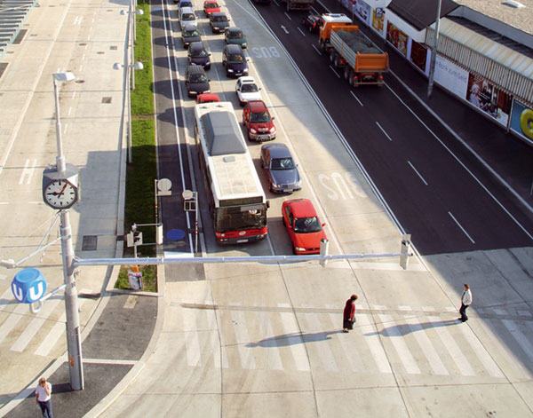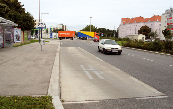 Obr. 10: Wagramer Straße, Donaustadtstraße  Obr. 11: Zastavovací pruh autobusu